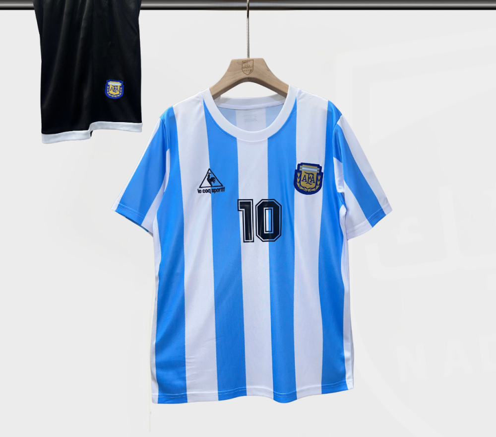عش أجواء كرة القدم الكلاسيكية مع طقم مارادونا الأرجنتين، 1986 لتكريم أحد أعظم لاعبي كرة القدم في التاريخ. هذا القميص مستوحى من التصميم الأيقوني الذي ارتداه دييجو مارادونا مع منتخب الأرجنتين، ويحمل الرقم 10 الذي ارتبط اسمه به إلى الأبد.